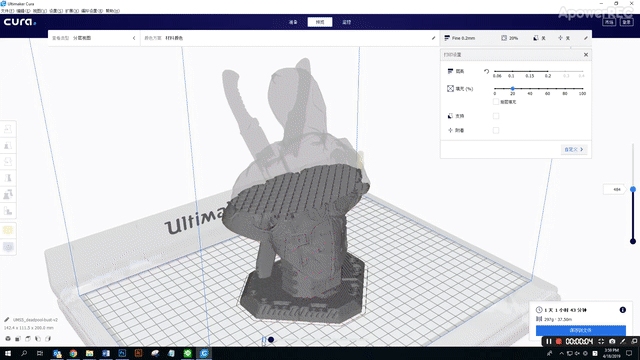 放進(jìn)切片軟體Cura 4.0中,有可以預(yù)覽所有列印路徑的功能,以0.15mm的層厚列印約需一天左右,整體完成後體積約17x24x30cm。我們使用最新機(jī)型Ultimaker S5 3D列印機(jī)列印這個(gè)大型物件,圖中可以看到FDM特有的堆疊紋理,這是因成型技術(shù)的原理所產(chǎn)生,各位可以比較三種3D列印技術(shù)的優(yōu)缺點(diǎn),選擇最符合需求的形式。(延伸閱讀:3種常見3D列印技術(shù)比較及整理。)