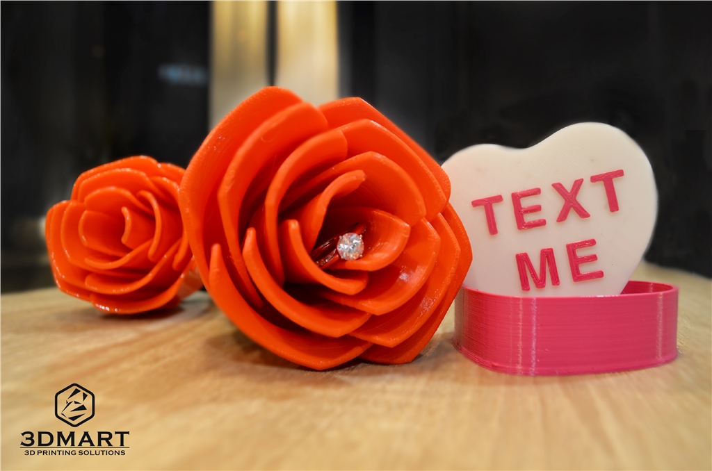 【3D列印應用】你值得更特別的七夕情人節~ 3D列印小禮 ~ 浪漫七夕情人節 就是今天~~~ 你已經想好要送什麼給你的另一伴了嗎? 什麼?! 你還沒想好要送什麼? 又想送鮮花、巧克力、等老套常見的禮物。 這樣就太無趣了啦,跟著3DMART一起用3D列印技術來度過一個美好又有特色的情人節吧~ 來看看我們用3D列印機精心製作出特別的情人節禮物,包準能讓你的另一伴大開眼界,加深你們之間的感情 這次我們準備了使用Ultimaker2+ 列印的三樣情人節小禮,包括愛心小盒、浪漫玫瑰花和愛心燈罩。 先來看看最浪漫的玫瑰花吧! 大家有注意到其中一朵的不同之處嗎? 只有小朵紅色玫瑰花有用polysher進行拋光,整體顏色顯得更鮮明,創造有如鮮花般的效果 美麗的玫瑰花中隱藏求婚戒指的驚喜,好浪漫呀~ (小編已羨慕) 接下來是小巧的愛心小盒,上方文字可以傳遞專屬愛的訊息,裡面可再放入小飾品,更有心意 最後一個藍色小夜燈,愛心造型讓你們愛情更增溫 最後一個3D列印情人禮品合照,擺起來是不是好美好浪漫呢? 3DMART 在此祝福各位有個美好的七夕情人節,享受浪漫愉快的兩人世界唷~