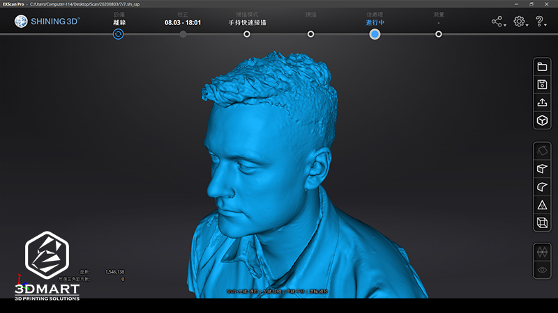 ,結果可以明顯看到,頭髮部分因為顯像不完全所以3D圖檔很不完整。