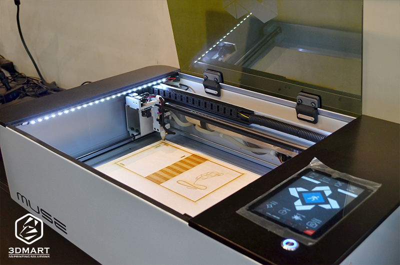 MUSE雷射加工機的最寬邊不到一米,底板可以拆卸讓下方的切割材料無限擴張(例如:放上門板或吉他進行雕刻);相比一般工業(yè)機種非常精巧且性能優(yōu)異,使用右方的彩色觸控屏點選操作,讓工作更輕鬆。