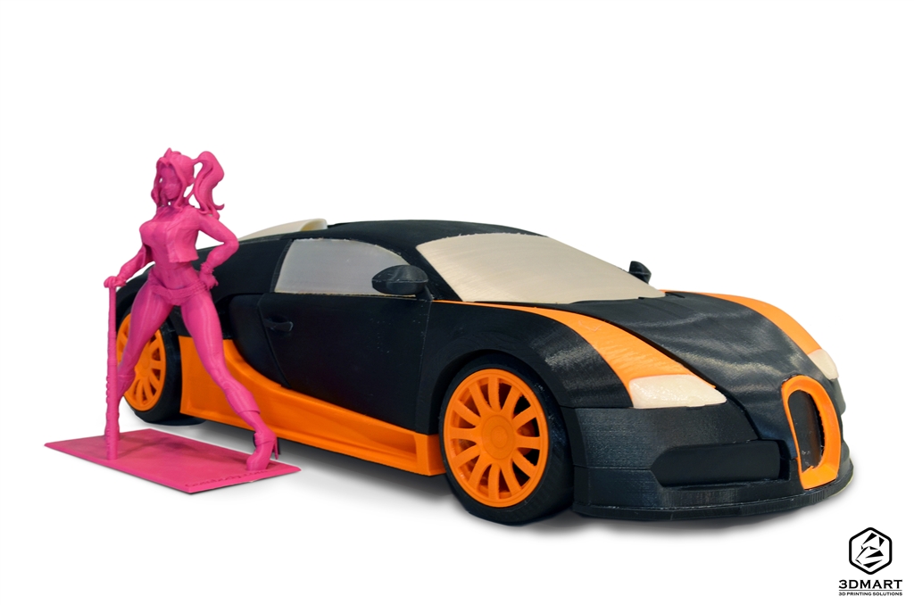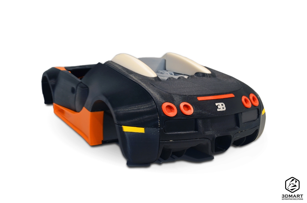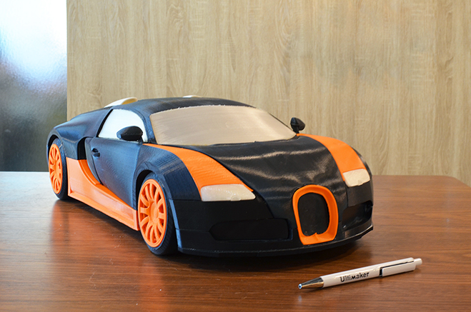【3D列印應用】自己的跑車自己印,實現你的跑車夢!!! 人人心中都有跑車夢,自己的跑車自己印!!還記得上次挑戰的大尺寸煞車卡鉗嗎?我們這次以Ultimaker S5、Ultimaker 3、Ultimaker 2+攜手合作,快來看看我們如何實現你的跑車夢! 我們不斷為各位客倌做新的嘗試,本次車體採用的主要材質為PLA,十分容易列印且不易翹曲,能提供物件良好的表面質感,同時可以搭配Cura 切片軟體,展現最佳的成品品質。除了Ultimaker 機器外,也適用於其他FDM機器,是一般材料中最經濟實惠的選擇,讓你印起來呷免驚、不心疼。 這次使用的是Bugatti的跑車模型,大家可以看到圖中引擎就有許多精緻的細節,現在就讓我們來挑戰啦! 由於PLA線材可以在Ultimaker 3上 與 PVA搭配做主體及支撐,非常方便;因此本次零件的印製涵蓋了許多水溶性支撐的應用,圖中便是車體引擎蓋的完成品。 這次主要使用單色印刷再印後組裝的作法完成整個模型,總體零件完成時間大約兩週左右(因為代印排程較滿,所以只能找空檔印啦~)。還好我們機器的種類很多,比較大的部分就可以交由Ultimaker S5來完成,最後組裝好的輪胎部分也大公告成囉! 車身整體組裝起來實在是太帥氣了!我們選用的是橘黑配色,各位印製時可以選擇自己喜歡的各色線材。 引擎細節的部份也都有印出來。 最後將輪胎裝上,夢想中的跑車就完成啦!加上旁邊的小丑女,完全就是香車配美人啊! 喜歡的話還可以再牆上及桌面搭配霸氣的背景,夢想近在咫尺,是不是很心動呢!!! 大家可能會好奇實際的尺寸到底是多大呢?!我們在此附上貼心的比例尺物件及一般環境拍攝給大家做參考,組裝完成後是要用兩隻手才能搬動的尺寸唷! 下方附上原檔案連結,各位可以立刻擁有喔!如果你有其他更棒的作品需要完成,我們也提供代印服務;如果想要更了解3D列印機的應用內容,也可以參考我們的其他文章。 原檔案在此:https://www.myminifactory.com/object/3d-print-bugatti-veyron-11092