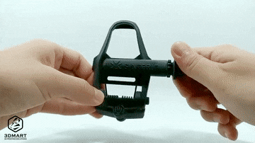 【3D列印應用】Sinterit新樣品第四彈:公路車踏板也能印! Sinterit的多功能新印品又來了!這次列印的是自行車「卡踏」,是公路車玩家用來固定雙腳的多功能踏板。卡踏的功能是搭配特殊卡榫的鞋底,將雙腳固定在踏板上有效出力及減少運動傷害的機率;這裡簡單分享結構的運作影片,讓各位能清楚了解: 影片中可以看到卡踏具備回彈結構及卡扣需求,並要有旋轉結構和自行車對接;Sinterit是SLS雷射粉末燒結的3D列印成型技術,適合列印多功能的結構或活動式裝置,因此我們選定這項複雜的3D列印樣品。 所有結構在單次3D列印中即可完成,且SLS技術不用支撐;採用PA12粉末列印、質地堅硬,與自行車體對接的結構可以完全360度旋轉。(延伸閱讀:3種常見3D列印技術比較及整理) 和鞋底對接的部分會有前後兩個卡榫,分別是可動式和固定式;可以看到3D列印的卡踏上有些微的突出結構,以及活動式卡扣的自動回彈系統。 另外附上細拍的正面結構,本次3D列印的彈簧是獨立分開的,不像前幾次的印品是與結構相連的,下方正中央的圓形螺絲也可以自由轉動。 我們會持續發佈更多3D列印的相關內容,歡迎來電向我們諮詢;或者我們也提供使用原廠機器的高品質代印服務,敬請各位持續關注我們的最新消息或粉絲專頁以獲得第一手消息! 追蹤粉絲頁、消息不漏接:https://www.facebook.com/88778853.com/