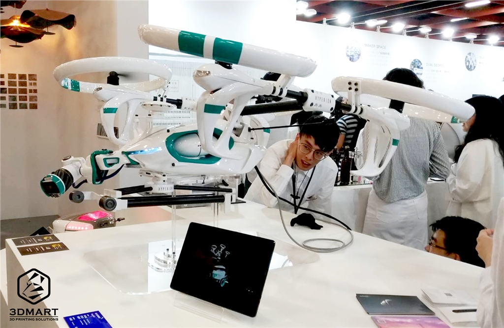 工業設計類有許多突破性的成果,這臺超越觀賞模型、真實可動的四軸飛行器,除了前方攝影鏡頭可像機械手臂一樣360度無限旋轉外,因為動能太強,甚至差點「掙脫」固定架在展場內直接起飛。