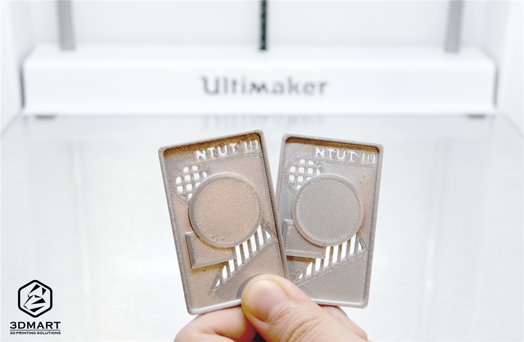 三帝瑪現場提供最新款的Ultimaker S5 3D列印機為學生免費列印贈品,透過現場3D列印機立即製作並贈送,許多參觀者都看的不亦樂乎,常常把櫃檯的小通道擠滿。由北科大設計的3D列印酷卡小而精緻,僅五公分的範圍內就有鏤空、浮凸、刻字等充滿層次的多重結構,很高興Ultimaker S5能夠滿足這些精細的需求。