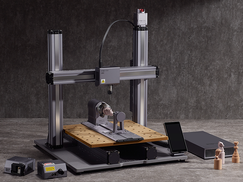 The Snapmaker 2.0 A350T/Artisan/Ray Rotary Module adds a 4th axis to your Snapmaker A350 3-in-1 3D Printer, making it an extremely mighty desktop CNC laser engraver/miller; Can be processed wood, tooling, plastic, bamboo, leather, fabric and opaque acrylic, even hollow objects can be carved.