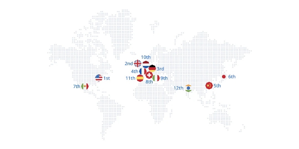 綜合以上因素,這些實施增材製造流程和3D列印的國家排名如下,同時也反映出各國的科技發展及對新興技術的接受程度及應用成果: