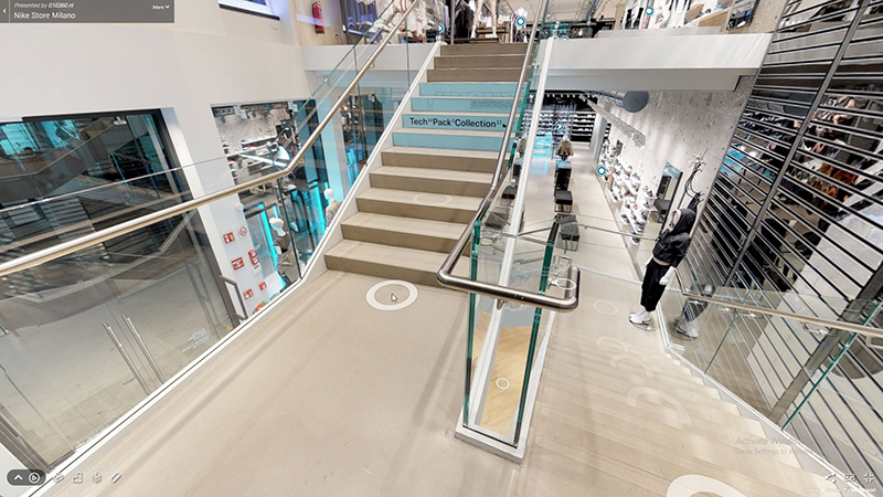 (NIKE米蘭店有三層樓,在線上逛街時也能實際上下樓參觀,過程有趣、更不需要人擠人。)