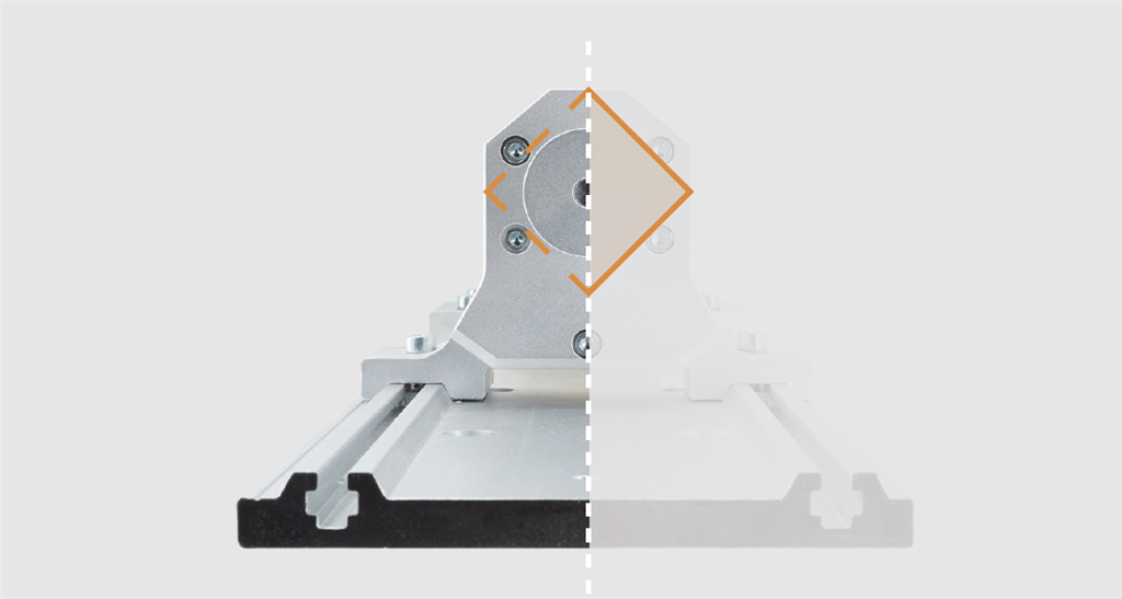 2. 取下頂部的保護膜。將壓克力板和廢板固定到工作臺上,如圖所示。對齊到錨點1的L型支架。