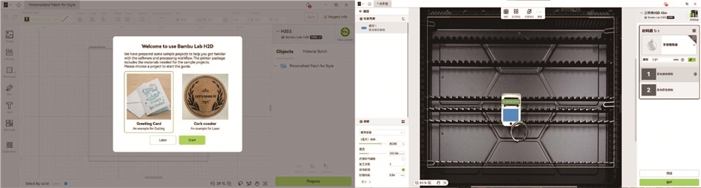 Bambu Suite 可以創建和管理所有使用 H2D 非 3D 列印功能的作業,包括雷射和切割以及筆架繪圖。