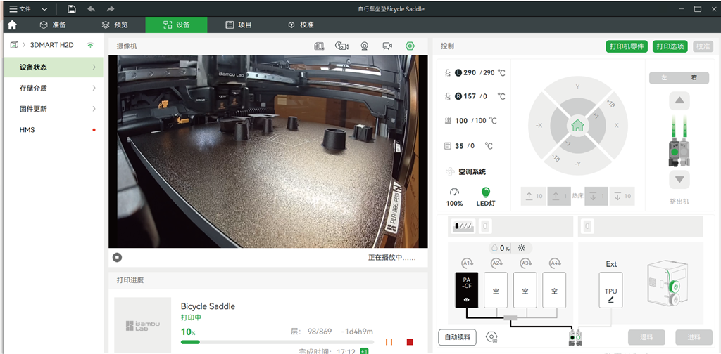 例如,一次列印就能製作出結(jié)合PAHT-CF與TPU的完整自行車坐墊,從外觀到功能性均兼顧。?