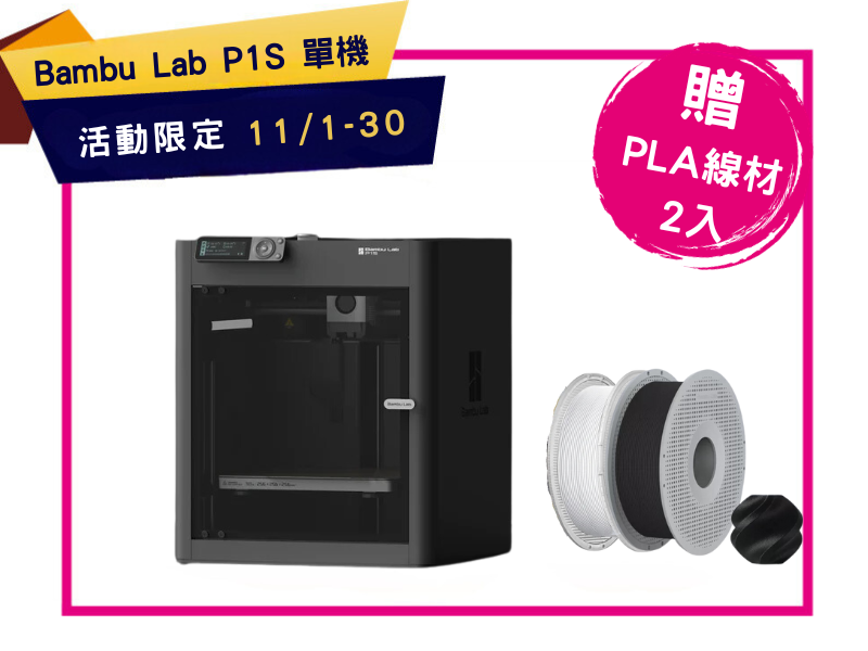 一、Bambu Lab P1S單機 + 贈PLA線材2入 $6,500