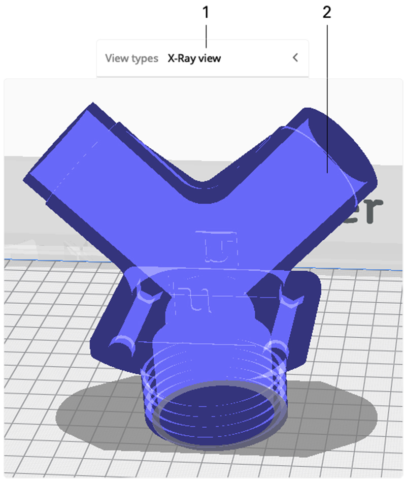 在進行切片前,切換到X光透視模式,能清楚看見物件內部的結構,假如有缺塊、錯誤的表面,軟體中會自動顯示成紅色,你可以快速檢查模型細節的問題,在3D列印前先抓出錯誤,能有效節省時間、提高工作效率。