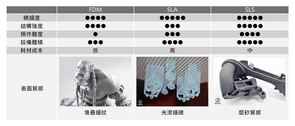 .FDM 熱融堆疊技術(shù)經(jīng)濟(jì)實(shí)惠因此最為常見(jiàn),由於體積較小且操作容易,一般中小企業(yè)也能快速上手,同時(shí)只需要最少的後加工和廢料處理。