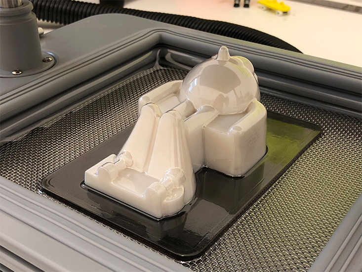 所幸,他們找到了桌上型FormBox真空成型機,非常適合為小型量產的客製化公仔製作規格統一的包裝。