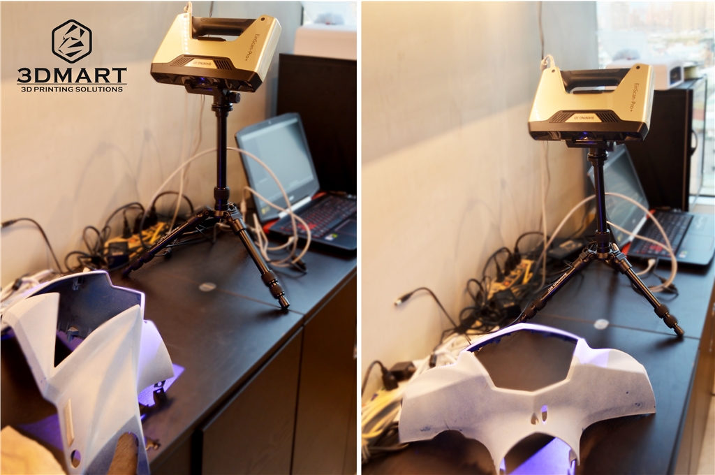 【3D掃描】機(jī)車(chē)殼也能掃?! 畫(huà)圖懶人的救星 大家還記得在之前文章中我們有帶大家初步了解3D掃描器的操作過(guò)程,以及測(cè)試掃描小型物件與人物頭像嗎? 想不到也沒(méi)關(guān)係 就一起回去複習(xí)一下文章吧! 這次要向各位展示使用3D掃描器來(lái)掃大型物件,我們同樣使用Shining 3D推出的EinScan 3D掃描器, 使用跟附近機(jī)車(chē)行要來(lái)的機(jī)車(chē)前方向盤(pán)車(chē)殼,造型如同酷炫的面具一般,也是十分適合3d掃描的物件唷! 先來(lái)看看我們要掃描的機(jī)車(chē)殼吧! 是十分顯眼的寶藍(lán)色帥氣造型~ 第一個(gè)動(dòng)作是先將物件噴粉,跟女生出門(mén)要化妝(上粉)才會(huì)被別人注意到一樣,噴粉可以讓掃描的過(guò)程更加順利, 幫助掃描器更快速的掌握物體的形狀。(注意:但並不是所有物件都需要噴粉,物件會(huì)反光或顏色為黑的比較需要噴粉 ,其他物件可以先掃描後再行判斷) 將掃描器對(duì)準(zhǔn)車(chē)殼正面,可使用腳架架高掃描器讓掃描過(guò)程更輕鬆,記得要調(diào)整車(chē)殼的角度讓掃描的檔案更加完整 可以看到掃描器本身的自動(dòng)校正技術(shù)十分優(yōu)秀,還不到一分鐘正面的造型,就幾乎能夠完整呈現(xiàn)出機(jī)車(chē)殼帥氣流線(xiàn) 的造型。 前面的車(chē)殼掃描完成後,再轉(zhuǎn)向背面的部分繼續(xù),一樣是要先進(jìn)行噴粉的動(dòng)作 後面的細(xì)節(jié)部分比較多,因此在掃描時(shí)需要比前面多一些時(shí)間,但在細(xì)節(jié)處理的部分都能夠非常細(xì)緻的呈現(xiàn)出來(lái), 掃描完成後一樣需要進(jìn)到3d軟體中進(jìn)行一些細(xì)部的調(diào)整,這樣在之後要列印的時(shí)候才會(huì)有更好的品質(zhì)。 最後再經(jīng)由工程師細(xì)部調(diào)整後最後的3D掃描圖檔 之後我們也會(huì)再陸續(xù)公布用這個(gè)掃描好的3D檔案列印的縮小版機(jī)車(chē)殼的文章 我們會(huì)陸續(xù)公布更多關(guān)於掃描相關(guān)的文章,歡迎感興趣的朋友們繼續(xù)關(guān)注我們的最新消息 這次特別感謝三帝瑪附近的三陽(yáng)機(jī)車(chē)所熱情贊助的 帥氣寶藍(lán)色方向盤(pán)機(jī)車(chē)殼 盡請(qǐng)大家期待我們之後 3D列印機(jī)車(chē)殼的誕生!