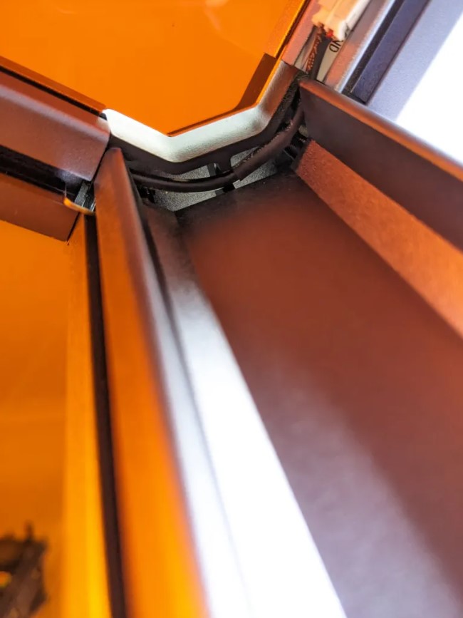 將電線放入底部型材連接器 – 然後進入 X 型軸 – 再從頂部連接器出來