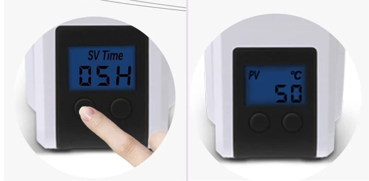 防潮盒內的濕度,主要是由左/右按鈕、數位螢幕顯示來進行調整設定,將溫度設定好後,長按左鍵會出現時間設定。