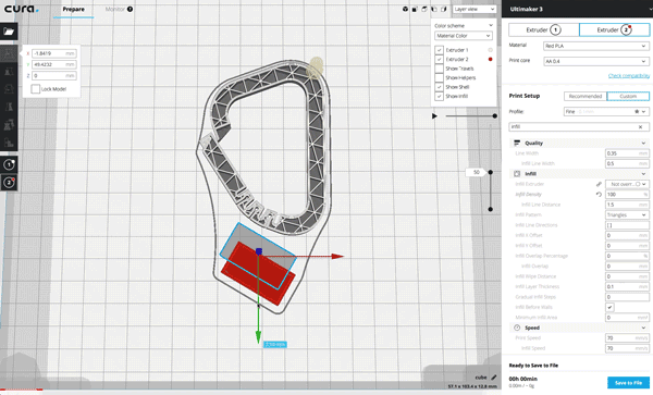 【3D列印快訊】Ultimaker Cura 3.2新版本發布! 測試階段已結束,我們非常有信心地要向您展示Ultimaker Cura 3.2的正式版。 在這個版本的Ultimaker Cura中,我們優化了用戶界面,以減少GPU對背面剔除的負擔,增加了新的UI元素, 允許在每個模型設置中創建網格物體,甚至只需加載即可進一步縮短啟動時間必要的資料。 繼續閱讀以了解更多新功能。 增強切片功能 自適應層 - 截至目前,切片被限制在一個固定的圖層大小。自適應圖層提供一種替代方法,其中圖層的列印厚度 與模型表面的角度配合。 切片算法將較窄的層厚分配給傾斜表面,並將較寬的層厚分配給垂直表面。達成高質量表面的處理結果,但需要 稍微增加列印的持續時間。該設定可以在實驗(experimental)的分類下找到。 可在「圖層視圖」模式中找到「圖層厚度」的顏色方案讓您能夠預覽列印的圖層厚度。 從黃色(最厚)到藍色(最窄)的顏色表示每層的相對厚度。 樹狀支撐 - 樹狀支撐是一種實驗的支撐方法,使用「分支」「生長」並向需要支撐的區域長出,模型上的接觸點更少 ,表面光滑度更好。使他成為有機品列印的理想選擇。也可以與其他支撐方法一起使用樹狀支撐。 樹狀支撐可用於有機體形成的物件。 UI元素 多層列印平臺。通過在軟體首選項中啟動多重列印平臺,可以在工作區中增加一個新的面板,使您可以在單個選單中 使用共享設定管理單獨的列印平臺。每個單獨的列印平臺會被加到Cura Connect的列印陣列中。 這解除了多次清除列印平臺的需要,以便更好地縮放操作,並更大限度地延長正常運行時間。 在單個選單中有多個列印平臺的切片檔案。 更快啟動 - 現在在增加列印機時就會載入列印機定義,不是在啟動時載入所有可用的列印機,與之前版本相比,減 少啟動的時間。 網格在每個模型設置 - 其他選項已加到每個模型的設定,提供簡化的方法來分配模型列印為網格。當處於自定義模 式時,可以將不同的切片設定分配到列印的不同部分,例如,一個網格作為自定義的支撐時,自動生成的支撐材料 不會放置在你不喜歡的地方。 下拉列表讓您可以指定網格的功能: 正常模型 (Normal model )- 將網格列印成正常模型。 列印成支撐(Print as support ) – 將網格列印為支撐材料。 不與其他模型重疊支撐(Don't overlap support with other models ) - 在網格重疊的區域不會生成支撐材料。 修改與其他模型重疊的設定(Modify settings for overlap with other models) - 將網格重疊的部分中列印網格以代替模型。 修改其他模型的填充設定(Modify settings for infill of other models) - 網格將在網格重疊的部分列印為填充。 修改其他模型的填充設定 這個登山扣是一個長方體網格切片,選擇「修改其他模型的填充設定(Modify settings for infill of other models)」。 網格跟分配給更密集的填充設定的其餘模型相比,能給重疊部分更大的耐用性。 背面剔除 - 通過只渲染模型的可見曲面,而不是渲染整個模型,讓層視圖在性能上更加提升。明顯提升了幀速率, 並降低了GPU的負荷。 更新側欄到QtQuick 2.0 - 應用程式欄位已更新成提升速度,更合適的寬度和風格,並為用戶提供下拉式選單,以配 合啟用的Ultimaker Cura主題,而不是操作系統的主題。 隱藏側邊欄 - 現在可以通過選擇View> Expand / Collapse Sidebar,或使用熱鍵CMD + E(Mac)或CTRL + E (PC和Linux)來隱藏或顯示側邊欄。這是為了擁有更寬廣的列印平臺,讓在小屏幕上顯示的列印平臺擁有更大的可 見性。 隱藏邊欄以獲得更好的視圖 禁用「發送切片訊息」- 在第一次啟動時增加禁用「發送切片訊息」的快捷方式,使需要隱私的用戶更容易保持切 片訊息的私密性。點擊禁用按鈕會將用戶帶到首選項(preferences),他們可以自行編輯首選項。 簽名的二進製檔案(Windows)- 對於安全意識的用戶,Windows安裝程序和Windows二進製檔案已經過數位簽 名,以防止“未知應用程序”警告和病毒掃描程序誤報。 每臺擠出機開始/結束gcode檔案-現在可以查看和編輯來自兩個擠出機開始與結束時變量的gcode片段,進而在不同 切片環境中的配置檔案裡建立一致性。 視圖查看優化- 3.1版中的快速攝影機控制鍵已經過修改,可以創造更精確的等距視圖,前視圖,頂視圖,左視圖 和右視圖。 快速相機控制 OctoPrint外掛加到外掛導覽器 - 這個外掛已經移動到外掛導覽器。這個外掛可以使用OctoPrint通過Ultimaker Cura 介面(版本 3.2 或更高階)來管理列印機。 修復錯誤 在我們社區的幫助下,我們修復了不兼容的鏡像工具和中心模型設定,修復了配置檔案位於遠端驅動器時的錯誤, 更新了Arduino驅動程序以防止更新為Ultimaker原始版本,並優化了自動排列所有模型選項,用於列印平臺上可靠定 位的多個小型模型。 現在就下載使用! 我們要感謝所有的測試者幫助我們測試這個版本,特別感謝fieldOfView的貢獻。 今天開始下載Ultimaker Cura 3.2探索它的好處! 原文連結:https://ultimaker.com/en/blog/52484-discover-ultimaker-cura-32