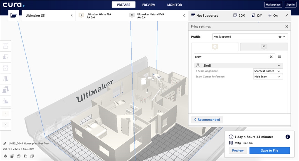 使用Ultimaker Cura中的「推薦模式」,內有可直接進行3D列印的參數預設值;「完全控制狂」也可以在「自定義模式」調整所有設定,共可享受300多項個人化調整。
