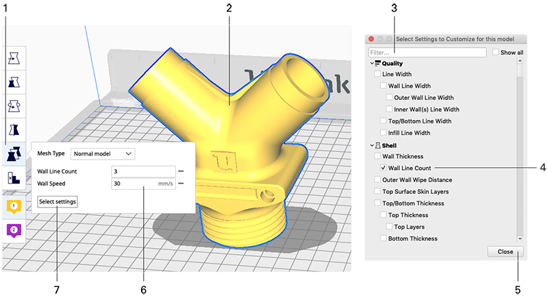 Ultimaker Cura可各別設定、更改模型使用的3D列印噴頭。