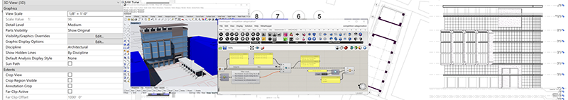 Rhino 7內建參數化建模軟體Grasshopper,一套圖像化的程式編寫軟體,透過Grasshopper實現繪圖與程式編寫之間最棒的協作方式,可以在繪圖平臺上即時回饋繪圖者的思維產出程式編寫的效果,用以分析或者建模都可以節省大量人力與時間,並可以實現所謂的自動化思維。