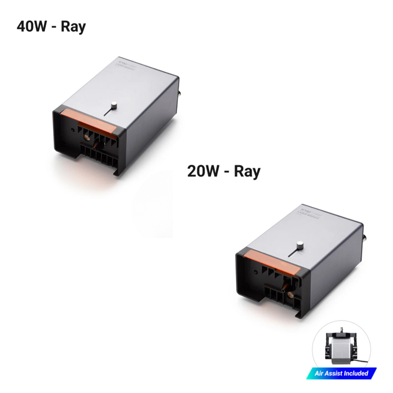 Snapmaker 20W 和 40W 雷射模塊是帶有空氣輔助功能的最新高功率雷射模塊。
