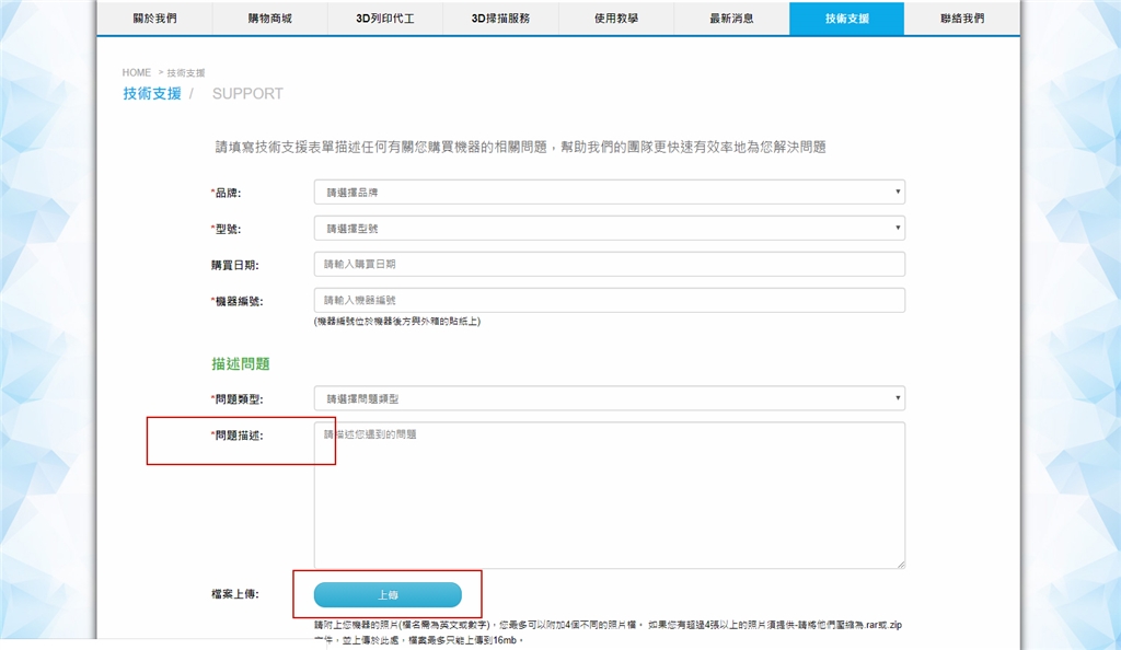 3. 為加速工程師判斷及處理,請在報修表單內附上以下資訊,並可直接上傳檔案