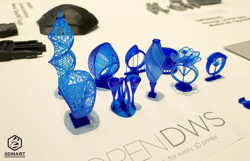 由於臘樹直接影響到金屬灌注的效果,因此3D列印的原型至關重要,藍色的珠寶樣本也是DWS的其中一款3D列印樹脂,成型結構非常精緻。