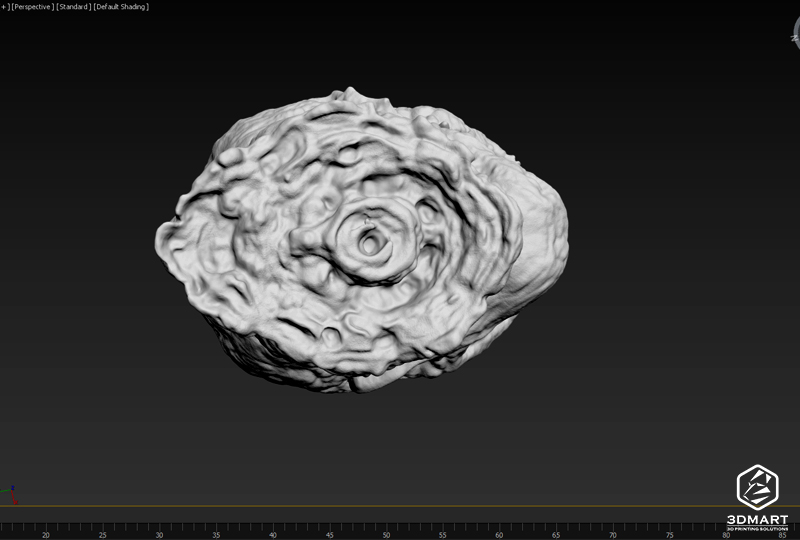 我們將3D掃描的圖檔放進3Ds MAX當中觀看成像效果,正面的眼窩成像清晰,突出的眉骨和眼窩裡的肌肉組織也都有照射出來。