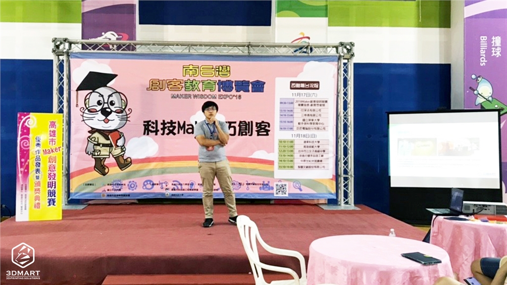 【3D列印展覽】大小朋友不亦樂乎!高雄創(chuàng)客展圓滿落幕! 南臺灣高雄創(chuàng)客展圓滿結(jié)束,現(xiàn)場充滿創(chuàng)意手作和益智科學;大人、小孩都玩得很開心,現(xiàn)在就來回顧當時的盛況!在高雄中正技擊館前就能看到滿滿的迎賓海報,場外的中央舞臺可以看到小朋友的表演節(jié)目,大家都賣力演出。 場內(nèi)也有舞臺發(fā)表的活動,三帝瑪也應邀出席,為大家講解3D列印的技術(shù)和科技,以及曾經(jīng)用於手工製作的案例等。 難得前往高雄展出,因此我們這次申請三個攤位,放上滿滿的展品要讓大家一次看夠三種技術(shù)(延伸閱讀:3種3D列印大比拚)。 不僅如此,連Ultimaker系列3D列印機都帶了兩臺,一臺是Ultimaker S5和Ultimaker 3,並且在現(xiàn)場實際列印贈品。 小編趁尚未開幕才拍到完整擺設的展品照片,剛?cè)雸鼍土⒖逃腥嗽儐?,後續(xù)湧入的小朋友更是好奇心旺盛又熱情活潑!只要是三帝瑪參加的展覽,現(xiàn)場都會派專業(yè)人員為大家做技術(shù)解說。 許多手作攤位都被擠得水洩不通,這次的展覽中有一些小型機器人和遙控運輸機;看得出科技已經(jīng)漸漸走入校園,大人、小孩也都知道3D列印機的基本概念,大家獲得新知的速度遠遠超過兩、三年前三帝瑪在其他展覽中的表現(xiàn)。 很高興這次的創(chuàng)客展圓滿落幕啦!無法到場的大家別傷心,我們未來會持續(xù)規(guī)劃活動與展出;追蹤粉絲專頁就能獲得第一手消息;而本次展場中的3D列印物件也將成為近期的神祕嘉賓,現(xiàn)場已經(jīng)有人搶先看到本尊囉!我們很快又會和大家分享,請各位拭目以待! 追蹤粉絲專頁、抓住3D技術(shù):https://www.facebook.com/www.88778853.com/