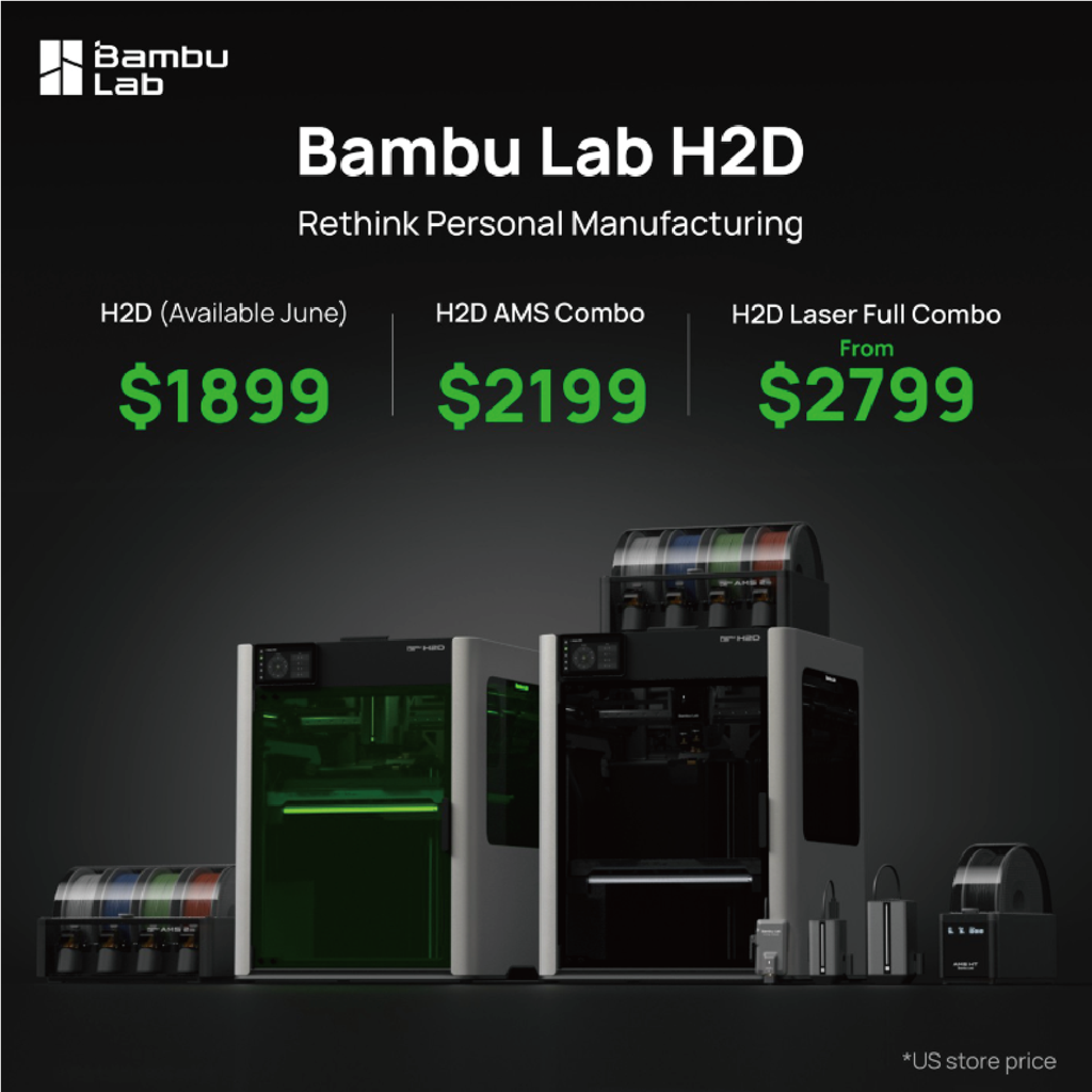 而H2D Combo中包含了同樣全新的 AMS 2 Pro 同捆出售,售價為 2,199 美元。