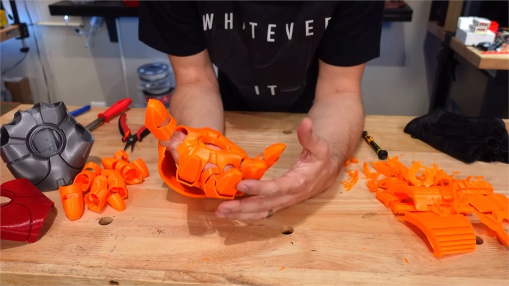 他提到最早的鎧甲模型通常是由一整隻手組成的,需要自己切割或分成兩半。 後來(lái)出現(xiàn)了 Walsh3D 的模型,它提供多種組裝方式,幾乎可以任意組合,而且你可以輕鬆地根據(jù)自己的需求進(jìn)行調(diào)整。 Kersey 選擇的是鉸鍊式鋼鐵人手,因?yàn)樗嘴杜宕?-你可以用磁鐵或插銷(xiāo)固定它,而且它還為電子設(shè)備提供了一定的空間。