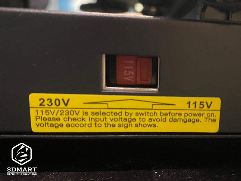 插上電源線之前,請先確認輸入電壓,選擇正確電壓115/230V(電壓設置不正確可能會造成損壞),最後將電源啟動。