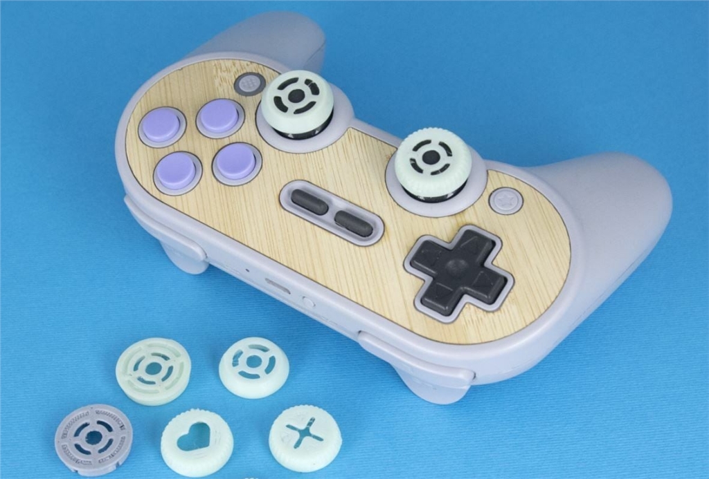 該項目包含幾個操縱桿帽,每個帽子都有不同的設計,並專為適合 8BitDo 控制器而定制。