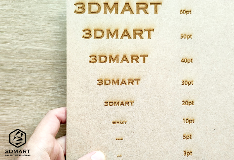 字體大小從20pt排列至2pt,最小的字體高約0.7mm,仍可以呈現出3DMart的標誌,小到相機難以對焦;以目前內部的測試品而言,MUSE雷射加工機的品質在應用上綽綽有餘,我們在3D列印展的S423攤位現場也可以看到這些樣品喔!