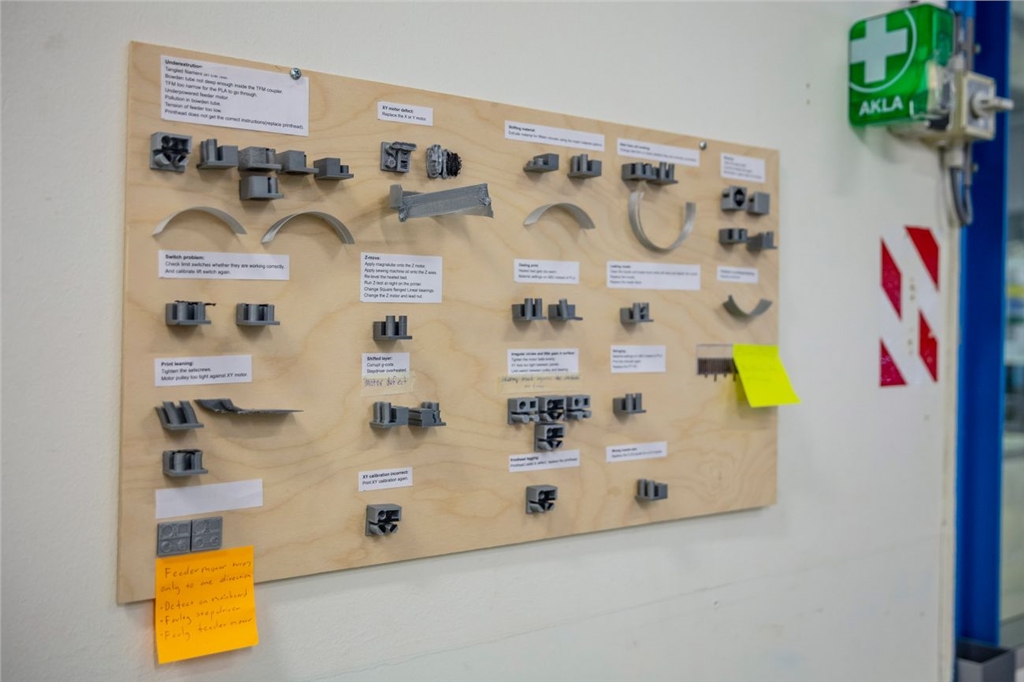 組成Ultimaker 3D列印機的零件要先通過品質控管這一關,每個零件都經過測量和測試,以確保一切符合標準,少量訂製件來自中國,其餘大部分的零件皆來自歐洲。以軸承測試而言,如果軸承不是正圓或有彎曲、無法通過游標卡尺的檢測,這個零件就會被註銷,如果同一批貨中有太多瑕疵品,則會向供應商整批退貨。