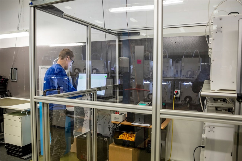 組裝一臺Ultimaker 3D列印機得從一塊外殼面板開始,在組裝前每個面板都配有軸承、螺母和各個元件。製程中的每個步驟都記錄在系統上,該系統在每個生產步驟的當下回饋相關數據,以便提高生產效率。
