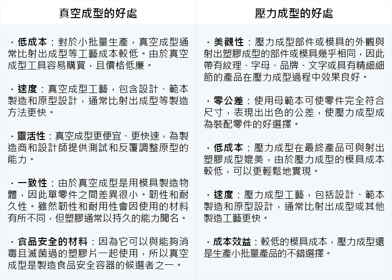 在真空成型中,公模板最為常見,使用的材料通常較薄,並且包裝等應用中預期的細節水準不高。
