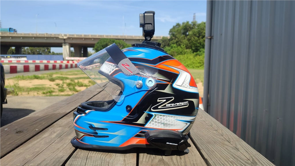 實際帶上去卡丁車賽道測試,完成品簡直跟原廠品一樣完美吻合!!! 也不怕Gopro底座黏性不夠的問題了