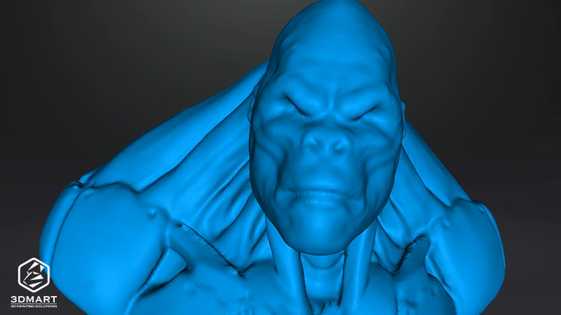 「EinScan SE」的掃描時(shí)間雖然較長(zhǎng),但不論是猩猩臉部的皺紋、耳朵深度、胸口盔甲零件、鎖骨凹凸…等,都有極為精細(xì)的效果。