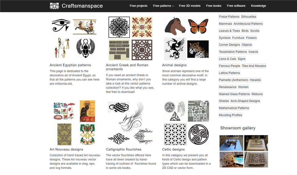 Craftsmanspace提供了豐富的免費3D模型和2D圖案。除了專門的模型文件部分外,免費項目部分收集了用戶上傳的案例,並附有詳細的PDF文件。該網(wǎng)站還有一個包含大量信息的知識部分,包括通過插圖和術(shù)語完成的對木工接頭的全面介紹。