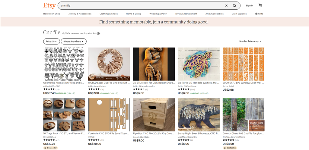 在搜尋欄中直接搜尋“CNC文件”,您將找到數(shù)百個用於CNC加工的3D模型,從木製星球大戰(zhàn)日曆到世界地圖浮雕。該網(wǎng)站支持按關(guān)鍵詞匹配、價格範圍、發(fā)布日期等進行篩選。此外,搜尋欄還提供了最近查看的項目。