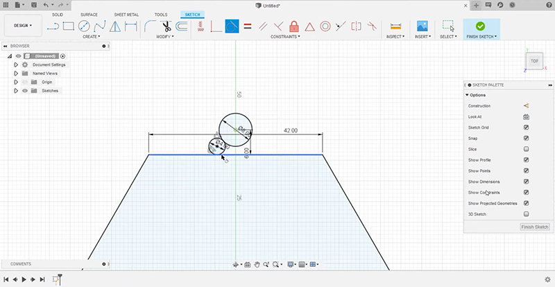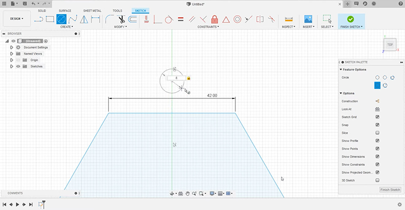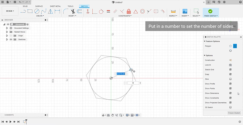依照需求繪製圖型,若最終成品為六邊形物件,首先只需大概做出圖型輪廓即可。點選「Create Sketch」,選擇XY軸線為基準的平面,新增草圖。