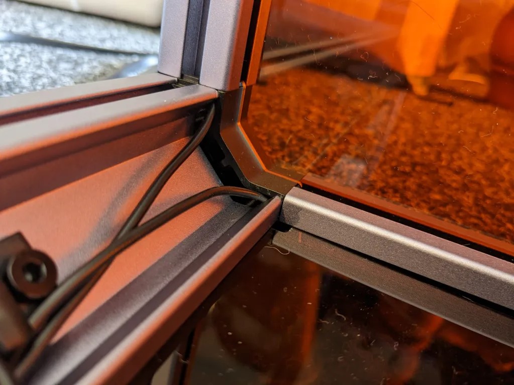 將電線放入底部型材連接器 – 然後進入 X 型軸 – 再從頂部連接器出來