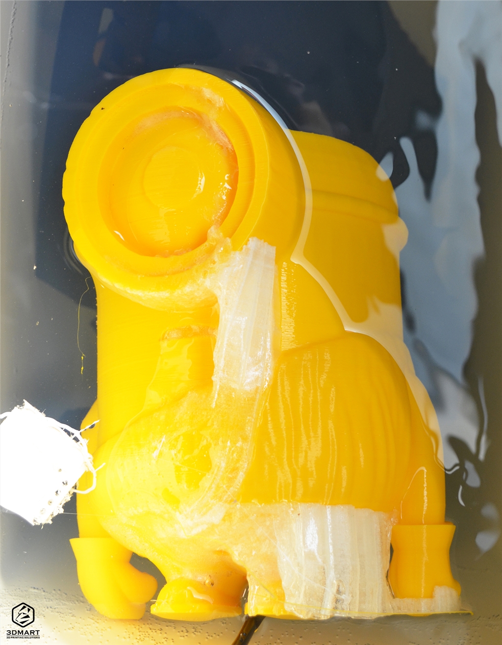【3D列印應用】辦公室新夥伴:3D列印小小兵進駐! 3DMart的辦公室中有不少綠化盆景,最近我們給他們換上新衣服也增添辦公室的樂趣,首先鎖定的就是沒頭毛又可愛的小小兵! 這次使用的是Ultimaker 3,主體是PLA搭配超級小幫手PVA水溶性支撐;經過2天17小時列印完成後拿到水裡泡澡囉! 給大家看看泡澡到一半、流鼻涕的小小兵,PVA水溶性支撐在列印完成後是硬脆的,放進水裡之後會像圖中一樣慢慢融化並且可以完全溶解在水中。 清潔過後先讓大家看看3D列印完成的樣子,裸體的小小兵直接拿來使用也是非常漂亮。 再來就是換盆栽的大工程,可以看到左邊的盆栽外觀醜醜的不太好看;我們即將換到可愛的小小兵裡面並讓小小兵長頭髮。首先要先放入一些新土,並將舊土混和一些到裡面。接著才將植物的根部連部分的土一起放入。 先讓大家看看換盆好之後的裸體小小兵,比起原本的盆栽已經好看許多;不過這樣還不夠,我們準備用壓克力顏料幫小小兵穿衣服囉! 由於FDM形式的3D列印仍然會有些許紋路,所以在上壓克力顏料的時候要多塗幾層;想要嘗試的朋友記得顏料要乾一層再上另一層會更漂亮,慢工出細活、千萬別心急唷! 對比單純的3D列印成品,上色後的小小兵顯得更有精神,歡迎大家也列印自己喜歡的腳色動手試試看!如果沒有3D列印機,我們也提供高品質代印服務喔!所有最新消息都會在我們的粉絲專頁上分享,歡迎大家持續關注! 列印你的小小兵:https://www.myminifactory.com/object/3d-print-minion-stone-age-planter-28678 粉絲專頁:https://www.facebook.com/www.88778853.com/