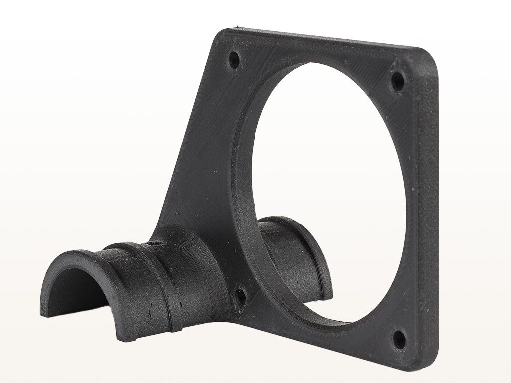 Erik Schwartz賽車隊與Ultimaker合作,在要求嚴苛的汽車使用情況下測試複合材料,這個零件是它們提供價值的完美例子。 Schwartz賽車車輛上的CVT離合器系統產生大量熱量。皮帶溫度可能超過120°C。保持皮帶溫度盡量低是維持皮帶壽命的關鍵。此支架在車架上固定一個大的軟管,充當進氣口。碳纖維複合材料具有較高的熱變形溫度,列印品可以在高熱區域附近承受而不變形。