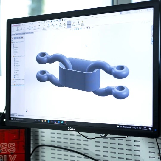 要使用3D列印樣品舉起超重型車輛,首先要分析可以使用的硬體。荷蘭皇家海軍有一個(gè)特殊起重坦克可以使用,連接方式是用兩邊都可以打開(kāi)的鋼環(huán),一邊連接起重機(jī),另外一邊連接拉升車輛的電纜。造型是一個(gè)細(xì)長(zhǎng)O型連桿,能夠連接兩個(gè)金屬鋼環(huán)並且舉起超重型車輛。