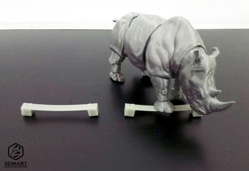 成品相對較軟,踩一腳彎曲的幅度會接近桌面;而右邊固化後的成品踩上去則是穩穩的撐住犀牛先生,只有微幅彎曲,硬度及強度都提升許多。
