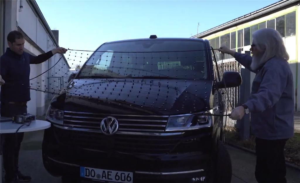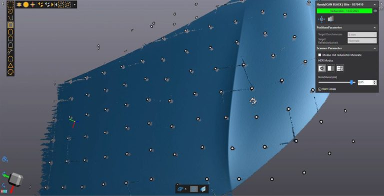 A network of reference points makes scanning large components such as engine hoods or vehicles faster and easier. The AESUB Target-Net is placed over the object and reference points are available over the entire area. It is an efficient alternative to previous adhesive dots. Also, the objects can be easily scanned with a