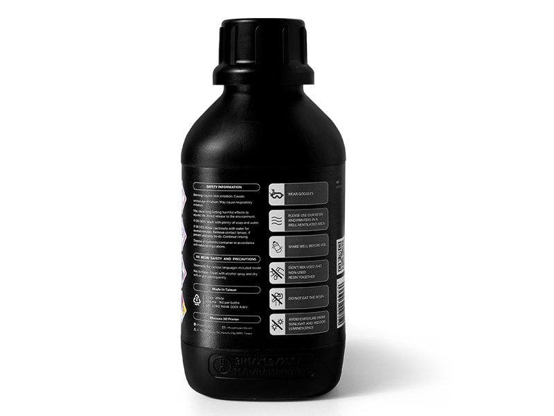 • After printing, please keep used resins in a closed & opaque bottle. Avoid mixing used resin with a new resin.